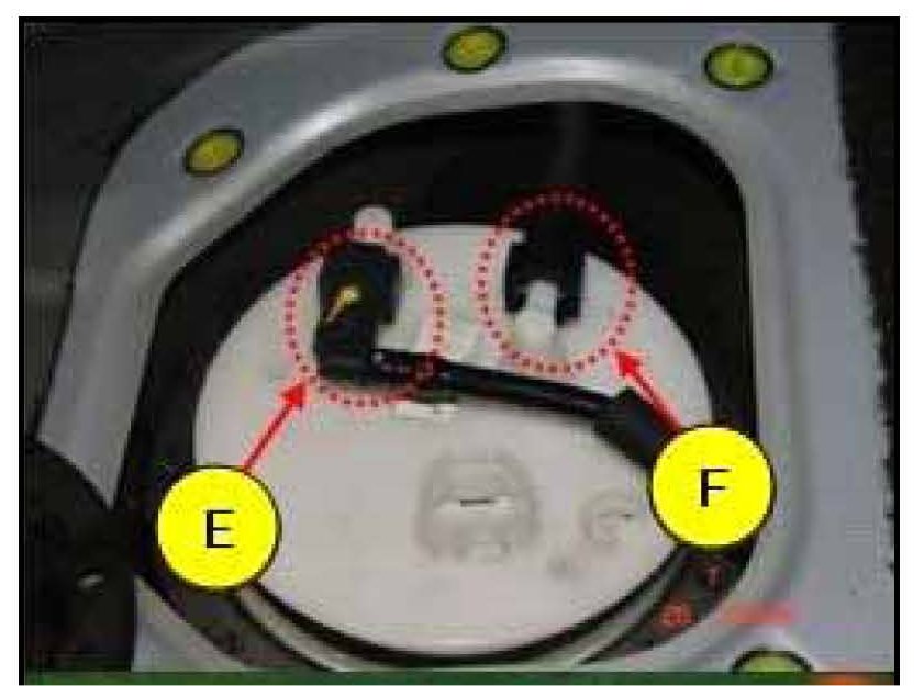 8. Disconnect the fuel pump and sender connectors (G).