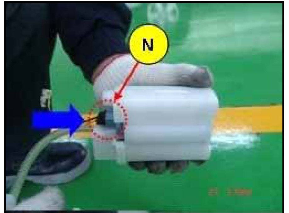 15. Remove the fuel pump (N) from the fuel filter by pushing it in the arrow direction.