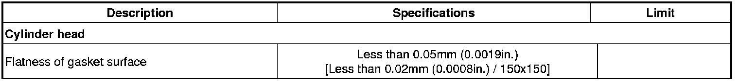 Head bolt: 37.3 - 41.2 N.m (3.8 - 4.2 kgf.m, 27.5 - 30.4 lb.ft) + 118 - 122° + 88 - 92°