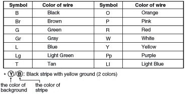 The following abbreviations are used to identify wire colors in the circuit schematics.