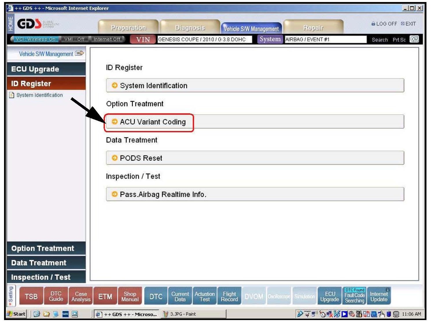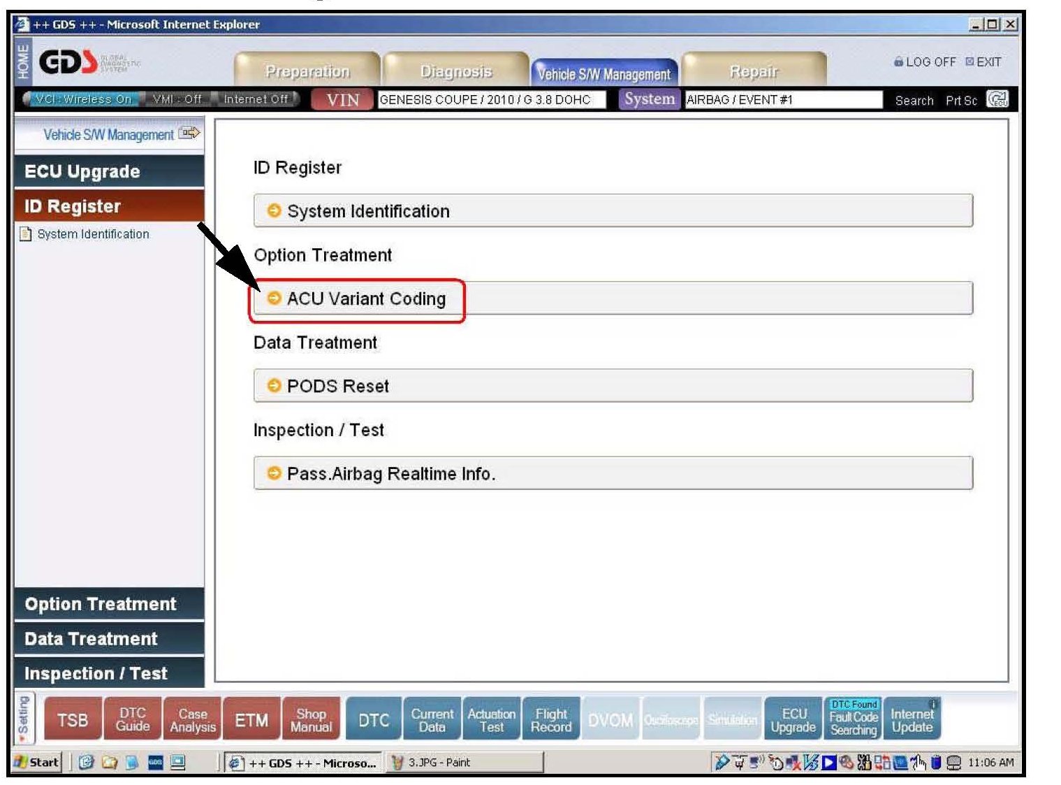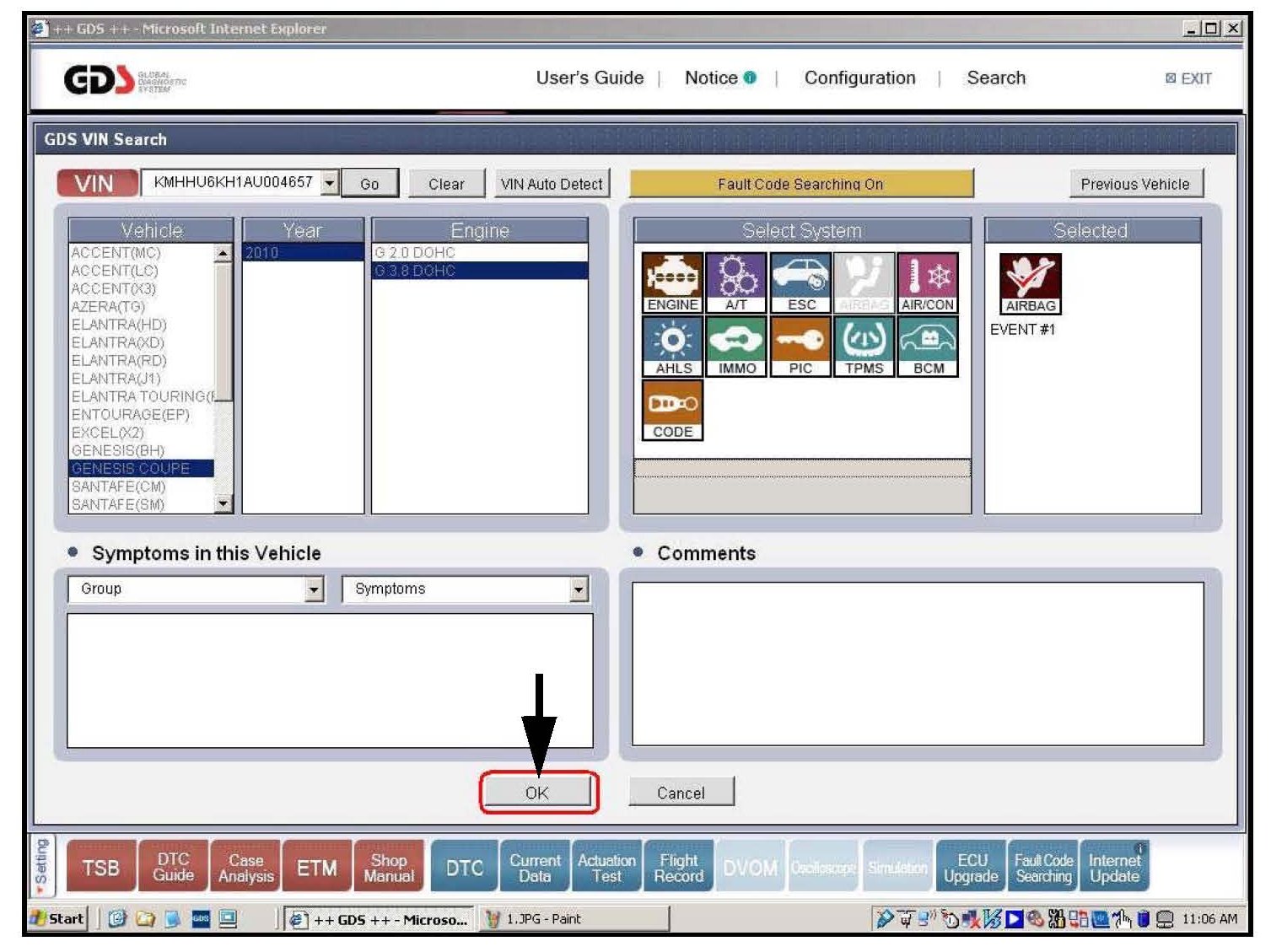 SRSCM/ACU Programming Procedure when GDS is connected to the Internet:1. Connect the GDS unit to the vehicle, select the vehicle model and then select the "AIRBAG" icon.