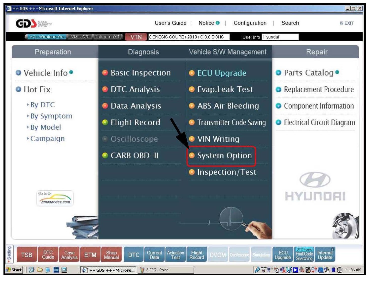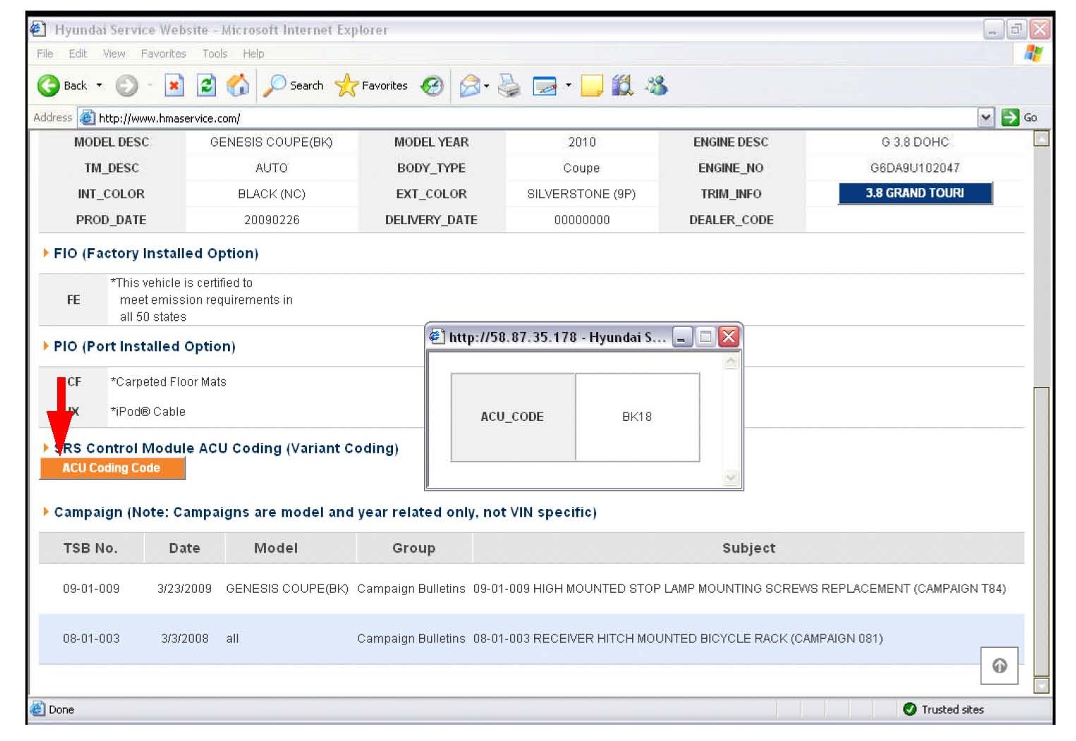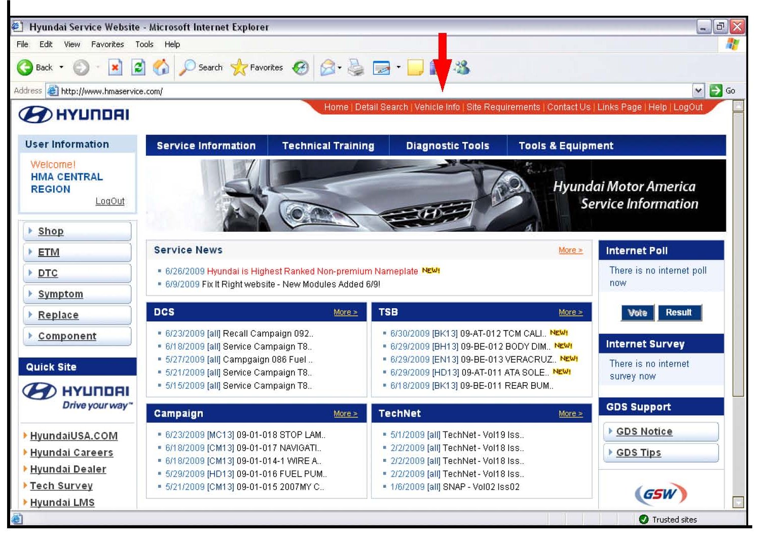1. To identify the variant coding code for the vehicle, go to the hmaservice.com website and choose "Vehicle Info".