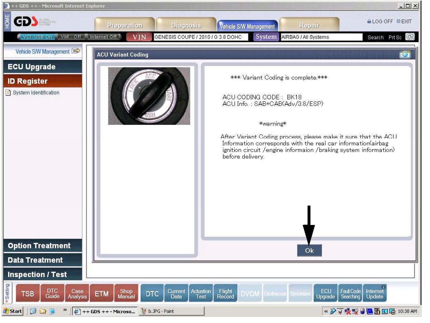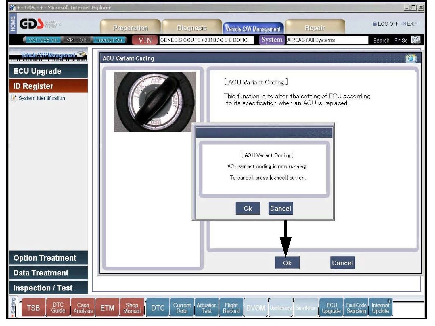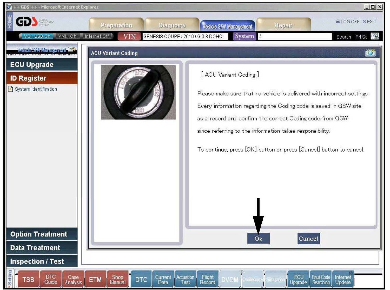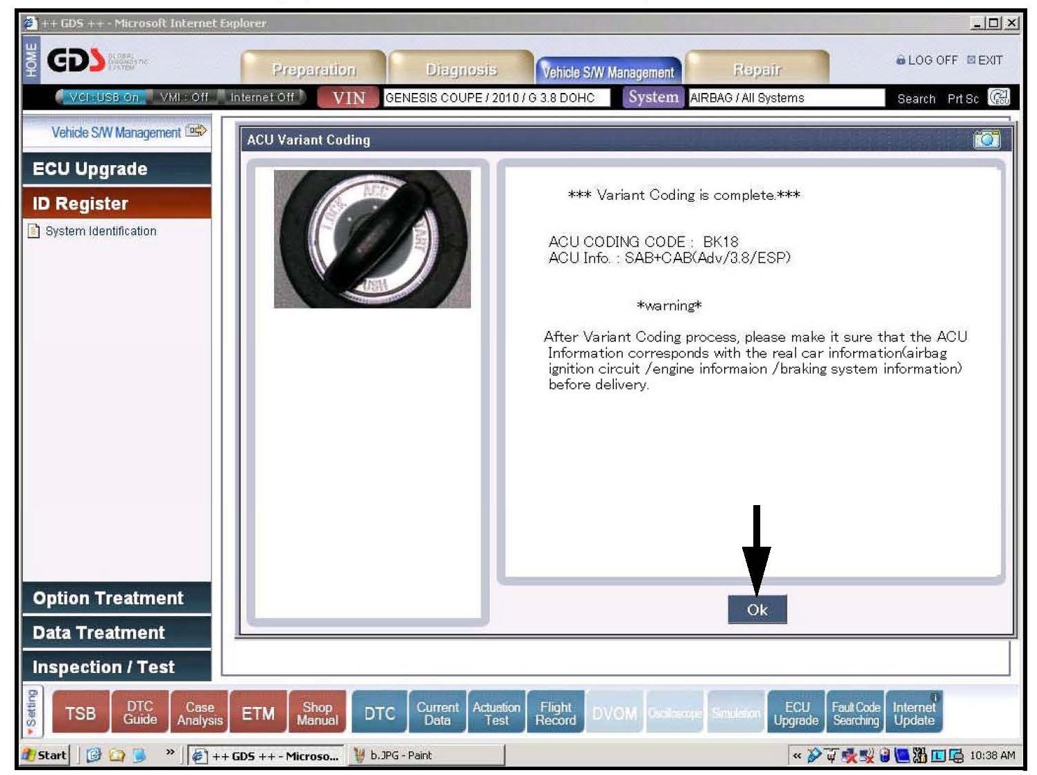 8. When the variant coding process is complete, the following screen will be displayed Select "OK". The coding procedure is now complete.