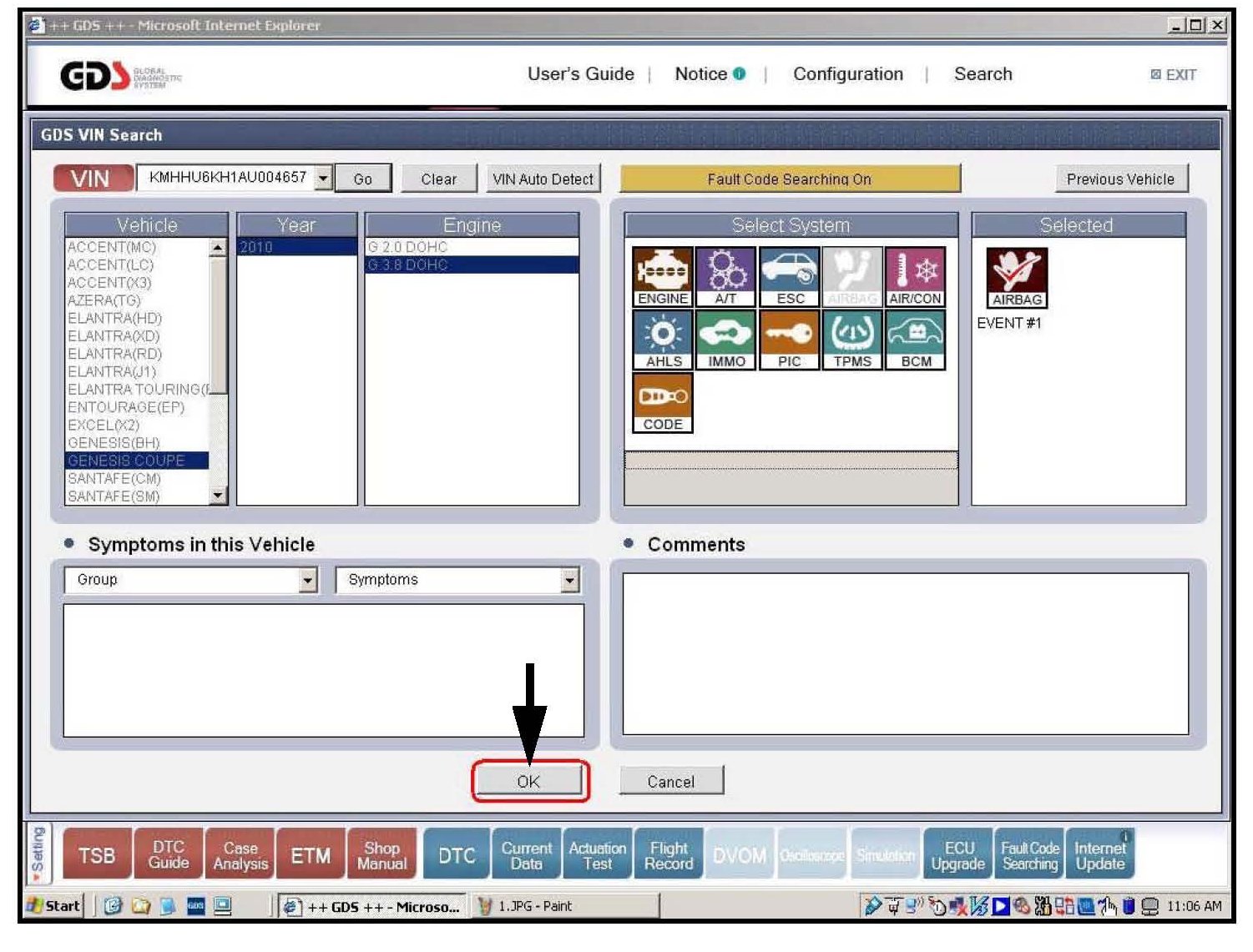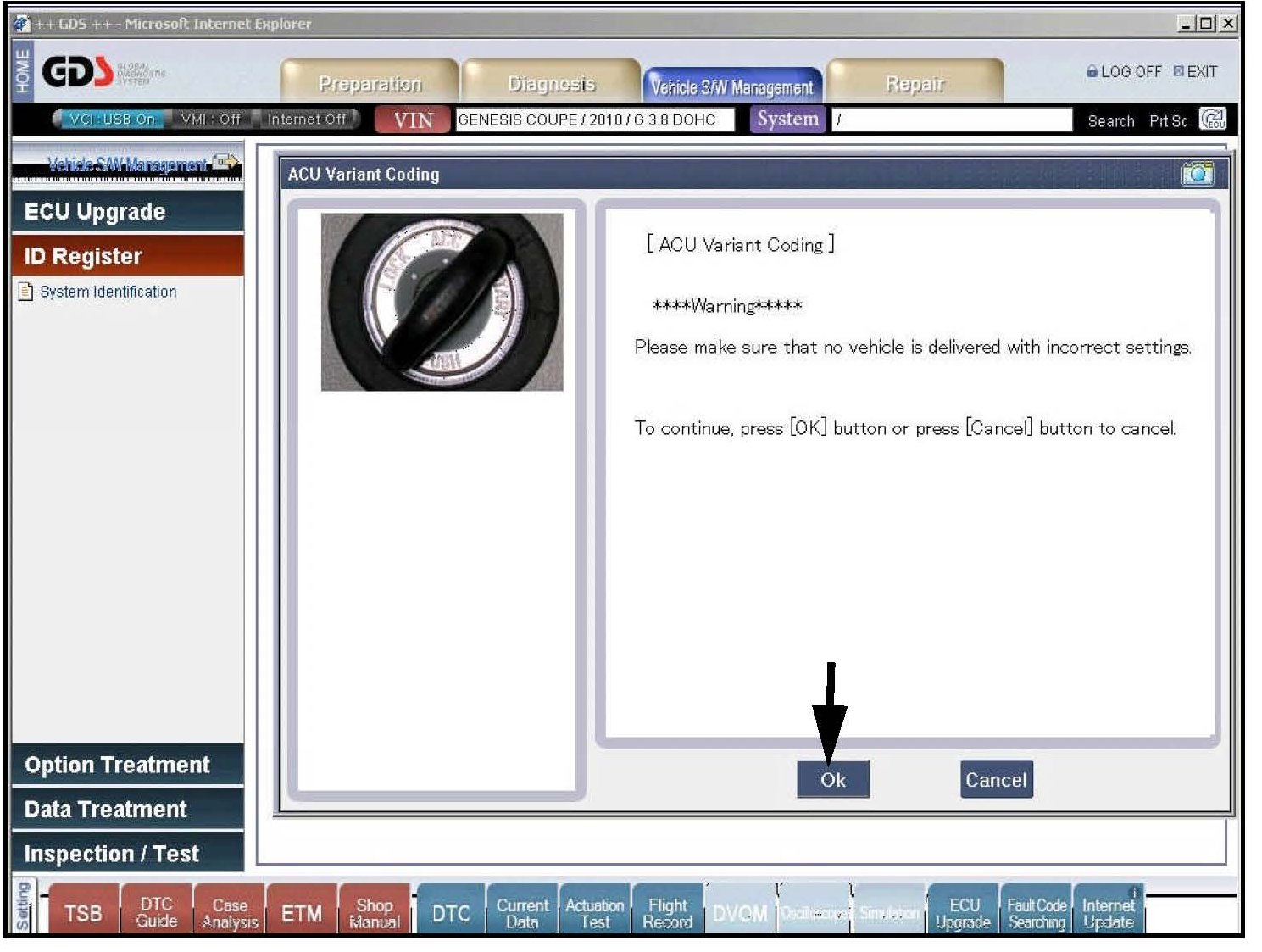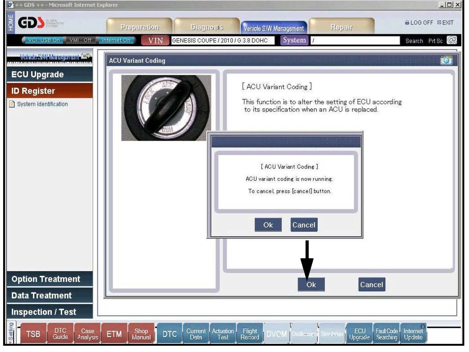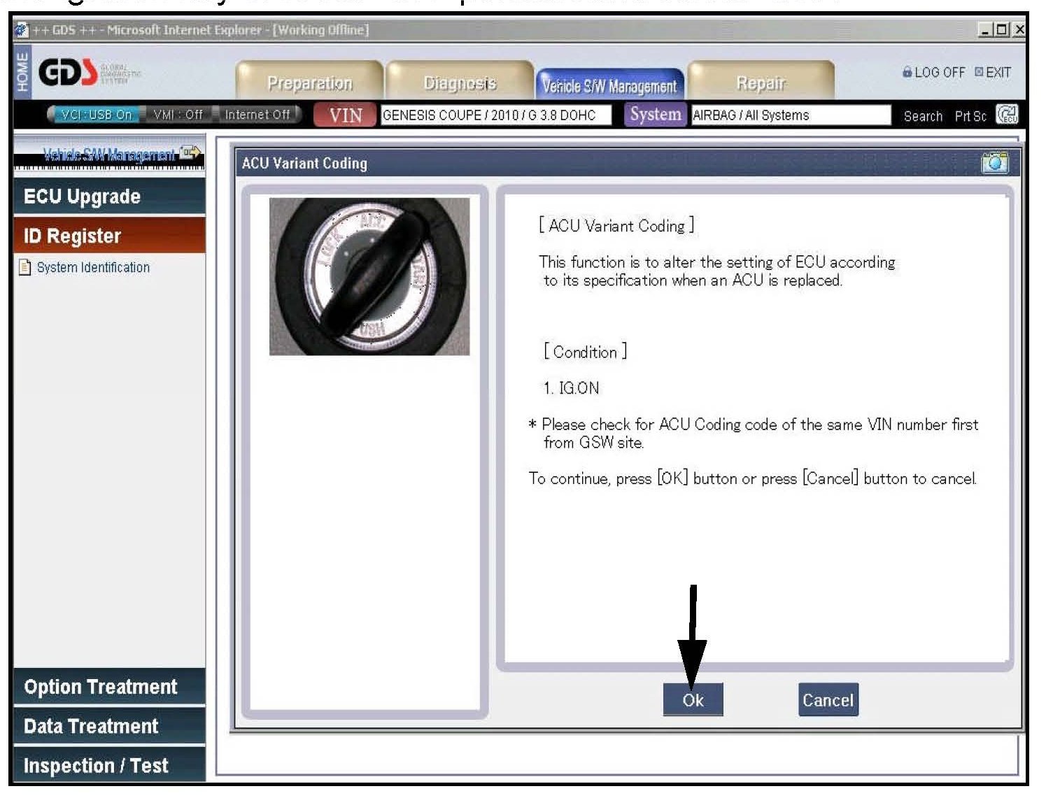 8. Verify the ignition key is in the "ON" position and select "OK".