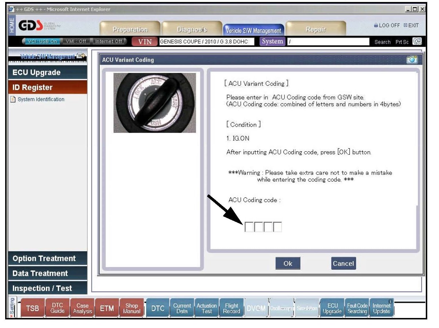 9. Verify the ignition key is in the "ON" position and select "OK".