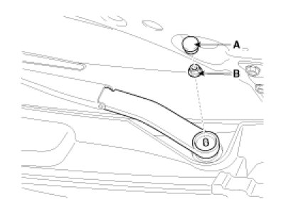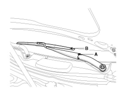 1. Remove the wiper arm mounting nut(B) after removing the wiper cap(A).