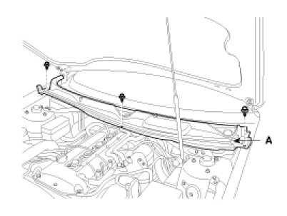 4. Remove the weather strip then remove the cowl top cover(A) after removing 3 rivets.
