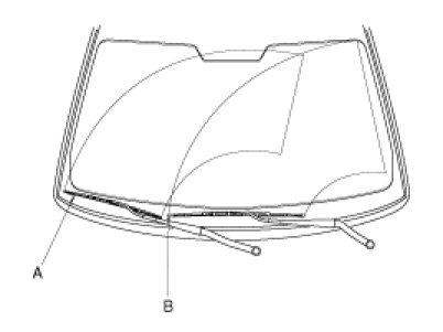 2. Remove the windshield wiper arm(A) and blade(B).