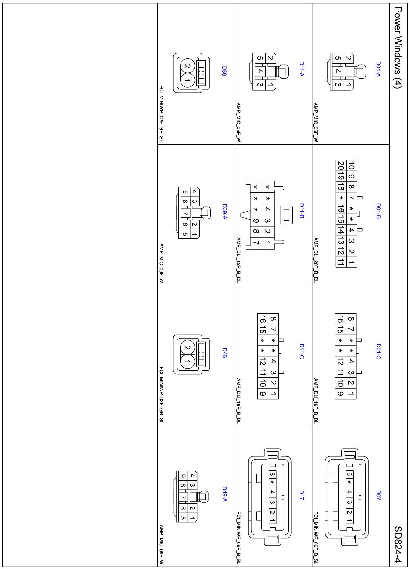 Power Windows (4) Connector Pin Outs: