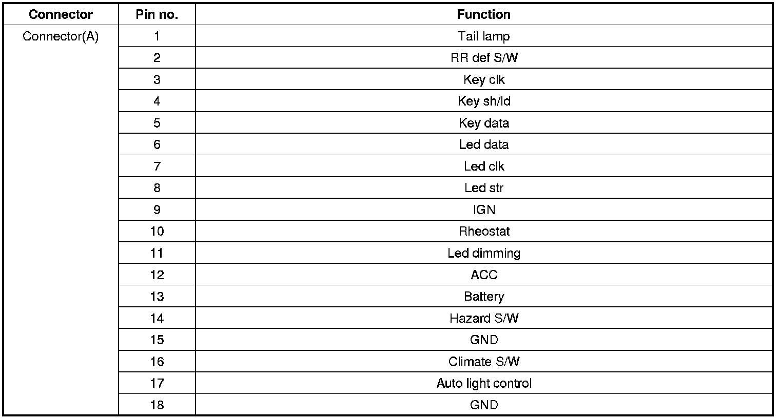 Connector Pin Function