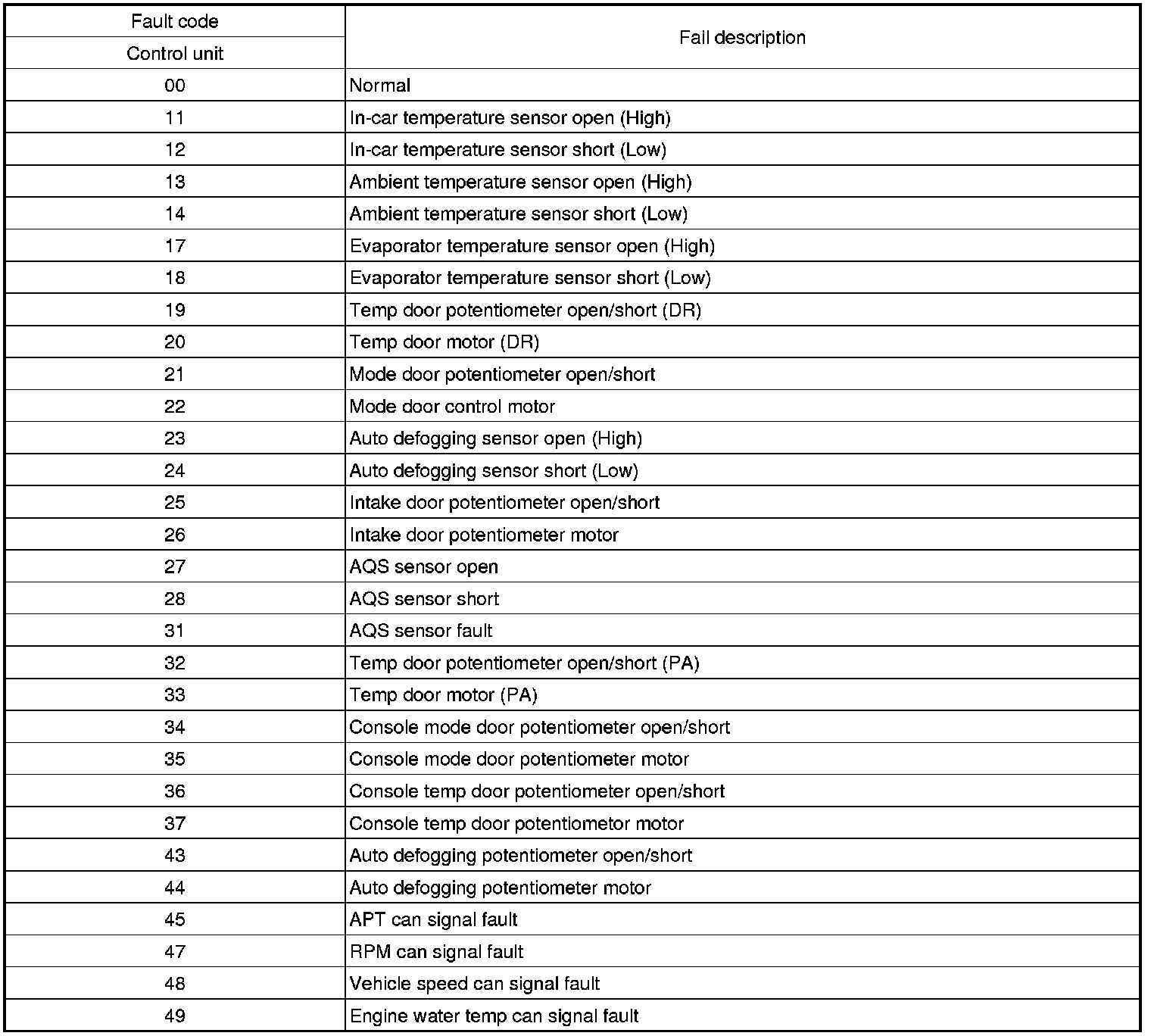 Fault code
