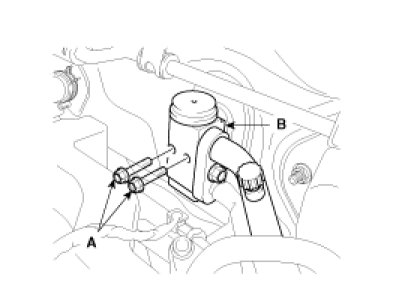 4. Remove the bolts (A) and the expansion valve (B) from the evaporator core.