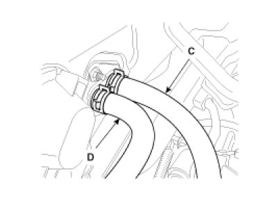 5. Disconnect the inlet (C) and outlet (D) heater hoses from the heater unit.
