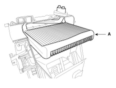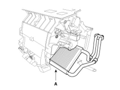11. Be careful that the inlet and outlet pipe are not bent during heater core removal, and pull out the heater core (A).