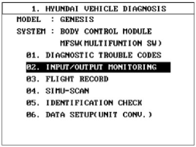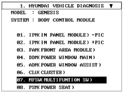 2. If diagnosis is required on the multifunction switch, select model and "BCM"