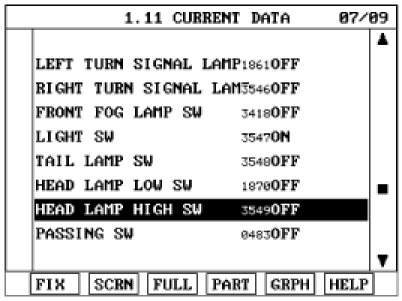 1. Check BCM input/output specification of multifunction switch using the scan tool. If the specification is abnormal, replace the head lamp or wiper switch.