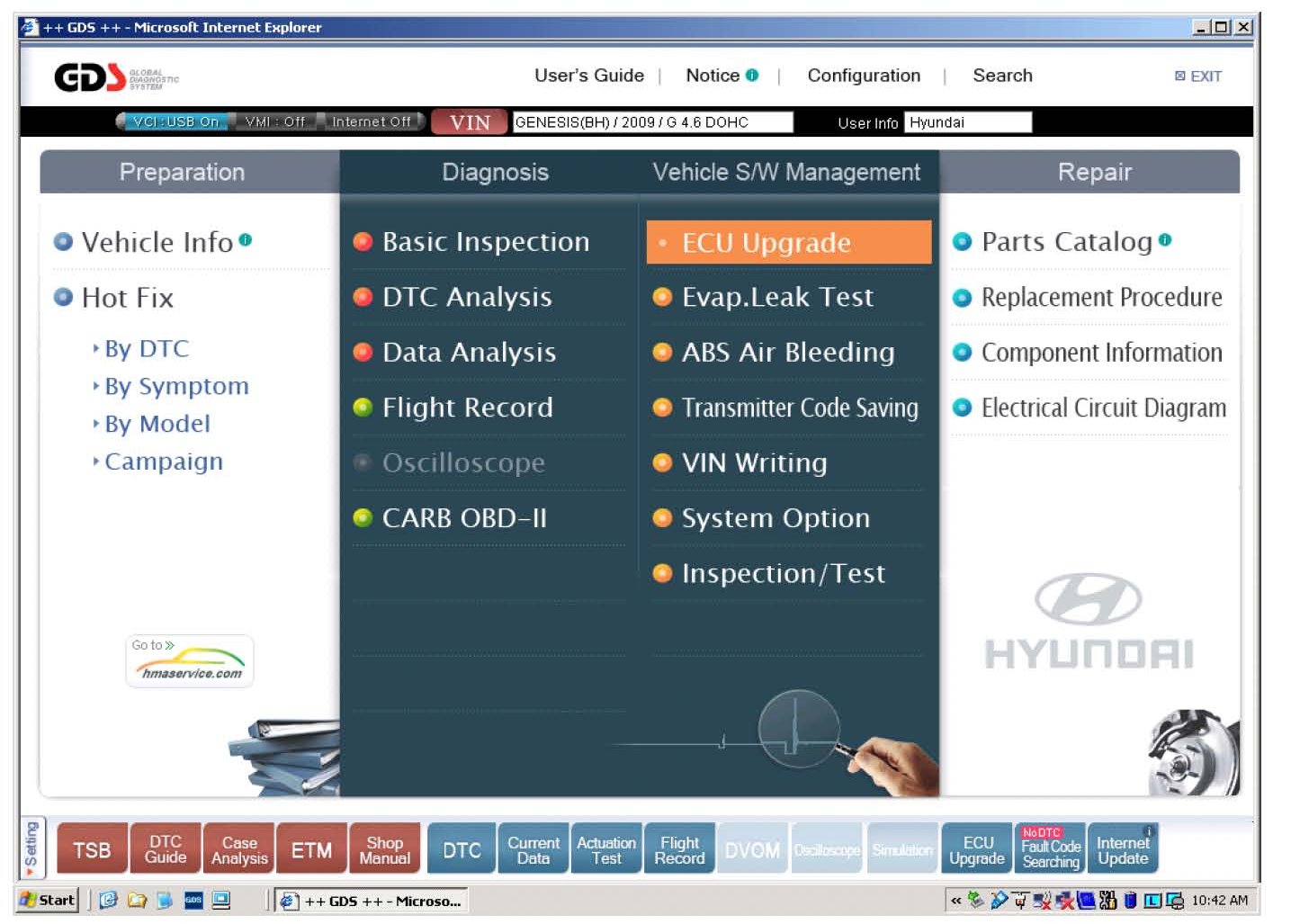 2. At the GDS main screen, select ECU Upgrade.