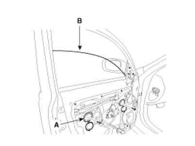 3. Carefully adjust the glass (B) until you can see the bolts, then loosen them. Separate the glass from the glass run and carefully pull the glass out through the window slot.