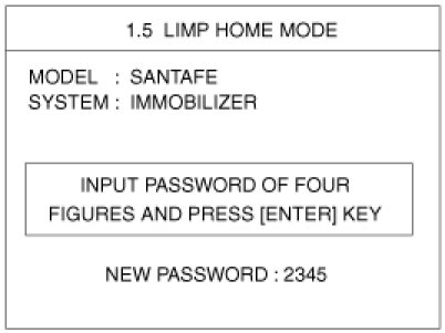 If the PCM(ECM) detects the fault of the SMARTRA or transponder, the PCM(ECM) will allow limp home function of the immobilizer. Limp home is only possible if the user password (4 digits) has been given to the PCM(ECM) before. This password can be selected by the vehicle owner and is programmed at the service station.