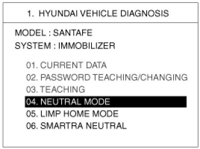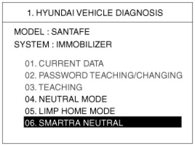This function is for neutralizing the PCM(ECM) and Key. Ex) when lost key, Neutralize the PCM(ECM) then teach keys. can be set to the "neutral" status by a scanner.If wrong vehicle specific data have been sent to SMATRA three times continuously or intermittently, the SMATRA will reject the request to enter neutral mode for one hour. Disconnecting the battery or other manipulation cannot reduce this time. After connecting the battery the timer starts again for one hour.