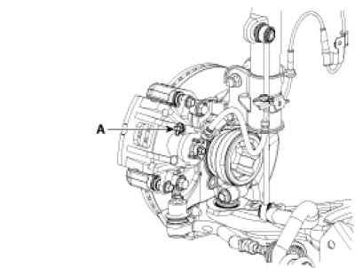 3. Loosen the right-rear brake bleed screw (A) to allow air to escape from the system. Then tighten the bleed screw securely.