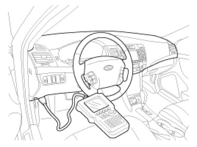 1. Connect the DLC cable of hi-scan to the data link connector (16 pins) in driver side crash pad lower panel, turn the power on hi-scan.
