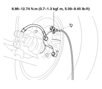 3. Loosen the right-rear brake bleed screw to allow air to escape from the system. Then tighten the bleed screw securely.