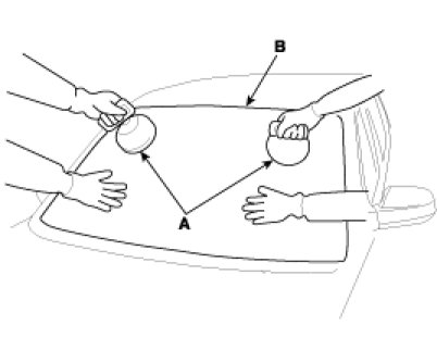 5. Remove the windshield (A) carefully using the glass holder (B)(09861-31100).