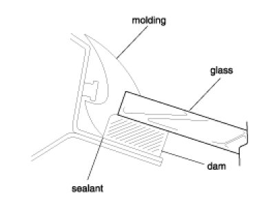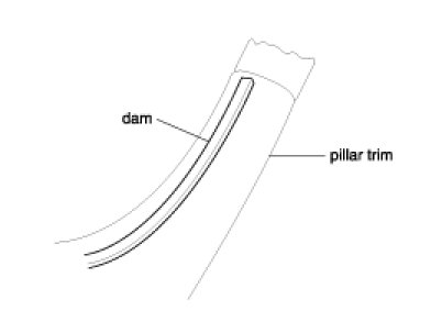 7. Install the self-adhesive foam dam to the body where the original dam had been.