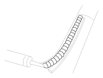8. Apply the sealant bead to the body just outside the dam. The bead should be slightly higher than the dam.