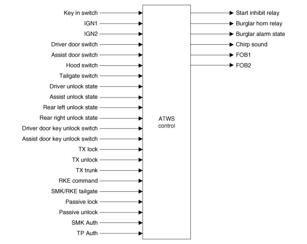2. LOCK / UNLOCK and panic signals are received from the transmitter and DOOR LOCK / UNLOCK and panic signals are output.