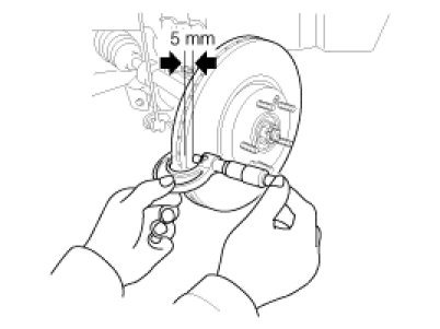 3. Remove all rust and contamination from the surface, and measure the disc thickness at 8 points, at least, of same distance (5mm) from the brake disc outer circle.