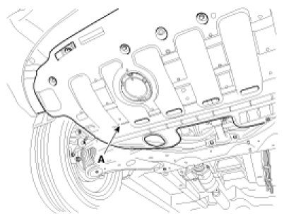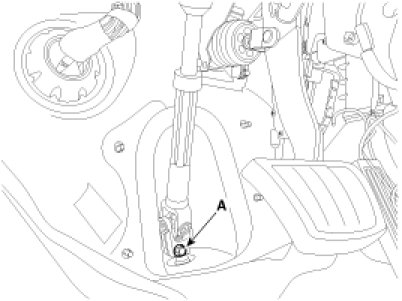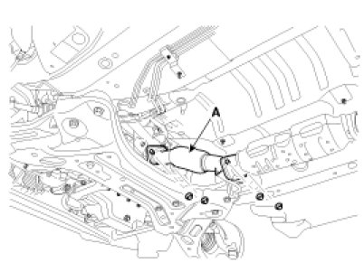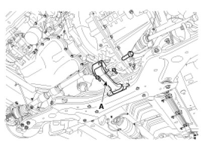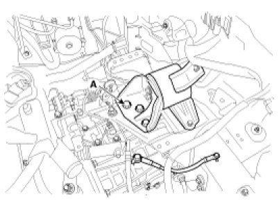 24. Disconnect the ground cable, and then remove the transaxle mounting bracket bolt (A).