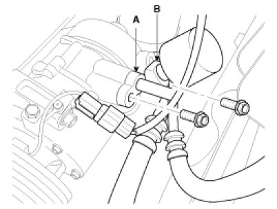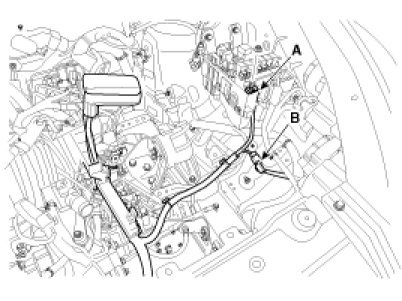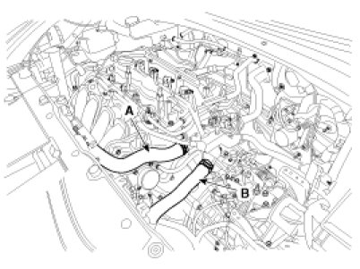 9. Remove the radiator upper hose (A) and lower hose (B).