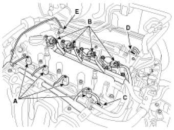 - After assemble the fuel line, turn on the ignition switch (do not operate the starter) so that the fuel pump runs for approximately two seconds and fuel line pressurizes.