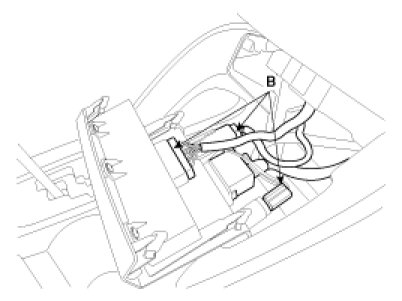 1. Using a screwdriver or remover, remove the floor console tray (A).