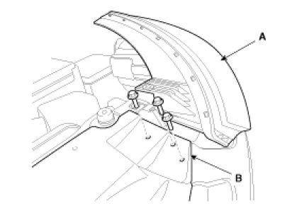 3. Remove the head lamp (A) after loosening the nuts of interfered radiator upper cover (B).