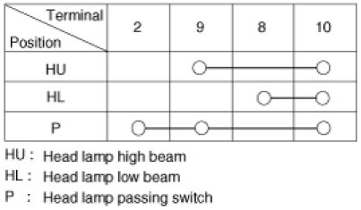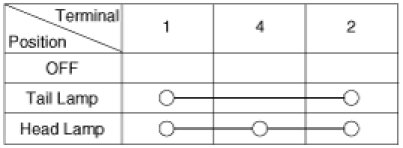 1. With the multi function switch in each position, make sure that continuity exists between the terminals below.