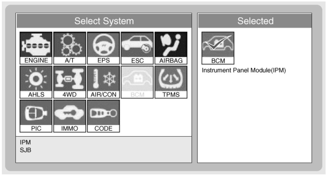 2. If diagnosis is required on the multifunction switch, select model and "IPM".