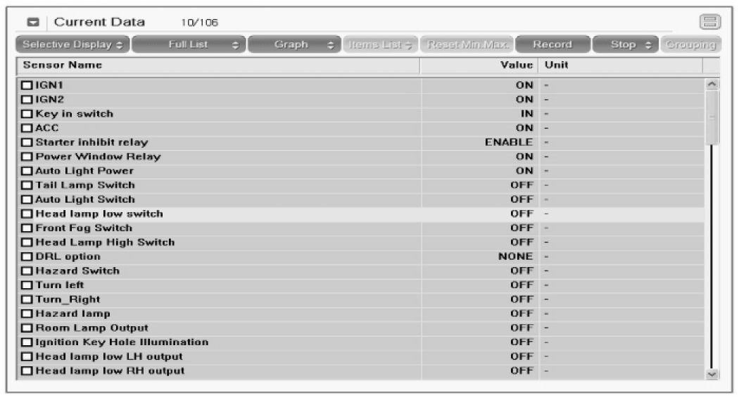 3. Select "Current data" and check the input/output condition of "Multifunction switch".