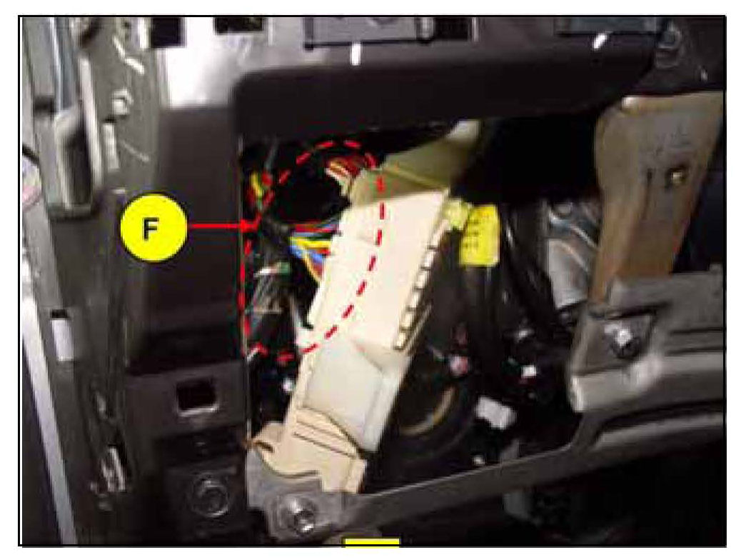 5. Disconnect the 4 wiring connectors (F) from the back side of the smart junction box and remove the smart junction box.