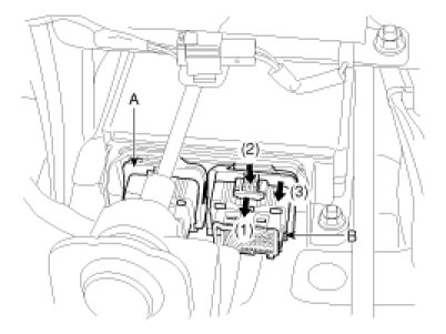 Disconnect the airbag system control module connector. (A and B)