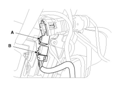 3. Remove the ignition switch (A) after disconnecting the 6P connector (B).