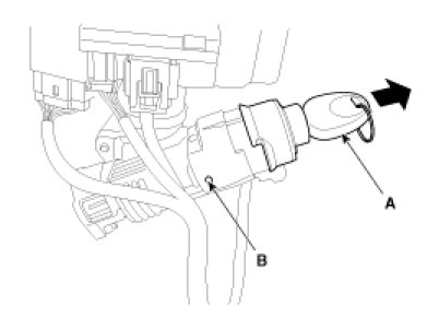 6. If it is necessary to remove the key lock cylinder (A), remove the key lock cylinder after pushing lock pin (B) with key ACC.