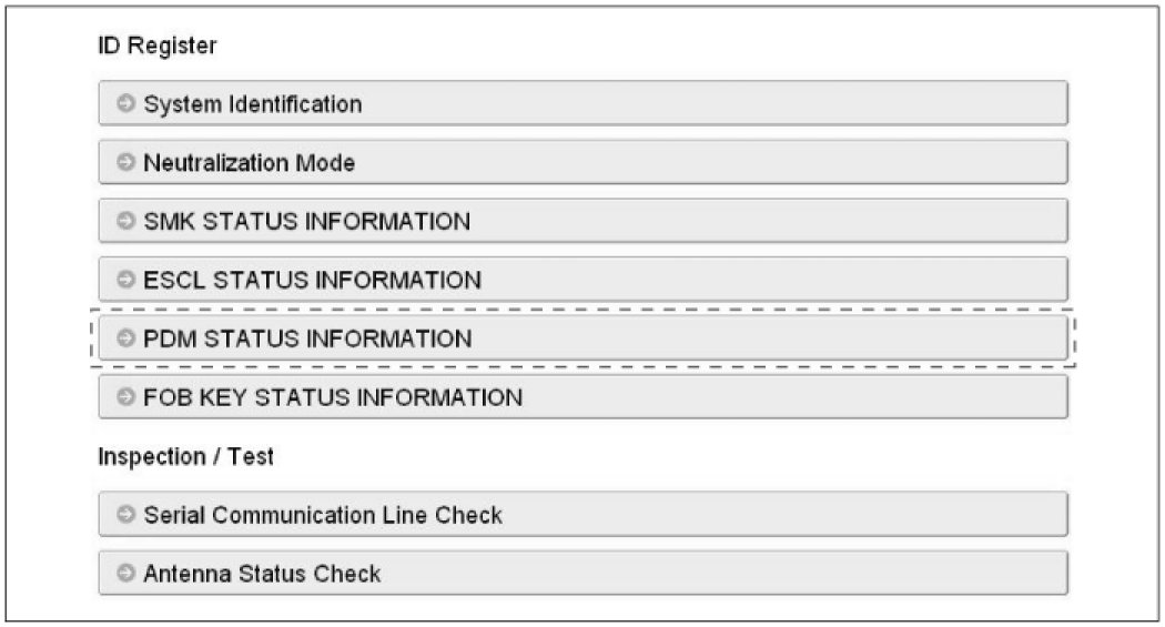 It will be able to diagnose defects of SMART KEY system with GDS quickly. GDS can operates actuator forcefully, input/output value monitoring and self diagnosis.