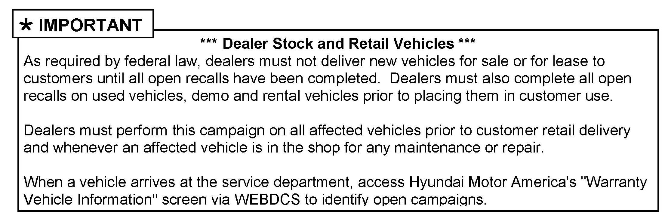 1. Verify that the vehicle has an open Recall 101 by accessing the "Warranty Vehicle Information in WEBDCS.