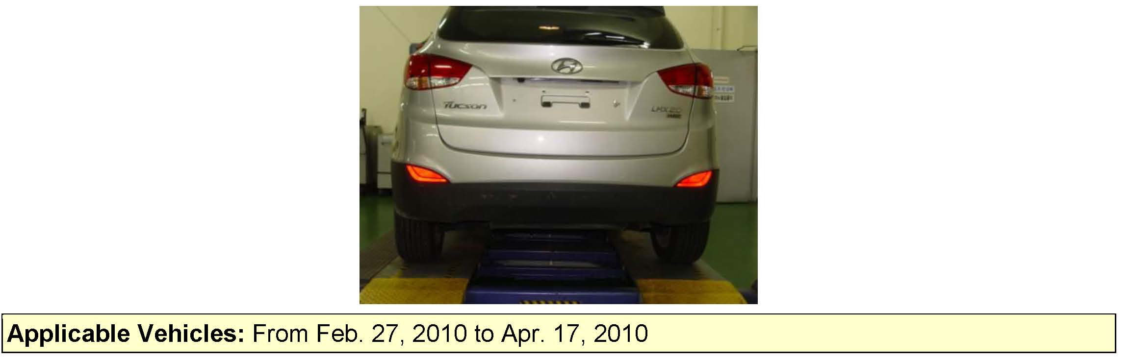 This bulletin provides information related to a recall on some 2010 MY TUCSON (LM) vehicles to replace the rear reflectors. The reflecting performance of rear reflectors may decrease by improper rear reflector lens.