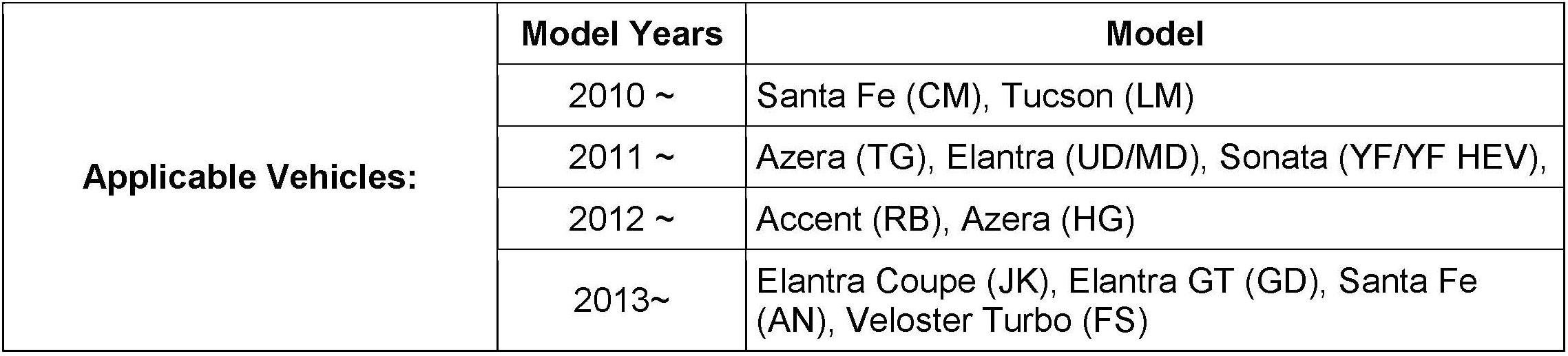 (YF/YF HEV), Tucson (LM), Veloster Turbo