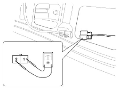 4. Turn the ignition switch ON and the windshield deicer switch ON, then measure the voltage between the terminals of harness side deicer connector.