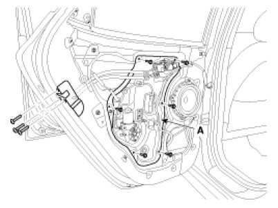 4. Loosen the door module mounting bolts and latch mounting screws.